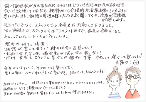 当院では、ご来院頂いている飼主様のご要望や当院のイメージを伺い、出来ることから改善を行ってより良い病院づくりをしています。過去に実施しましたアンケートの結果をご紹介させて頂きます。